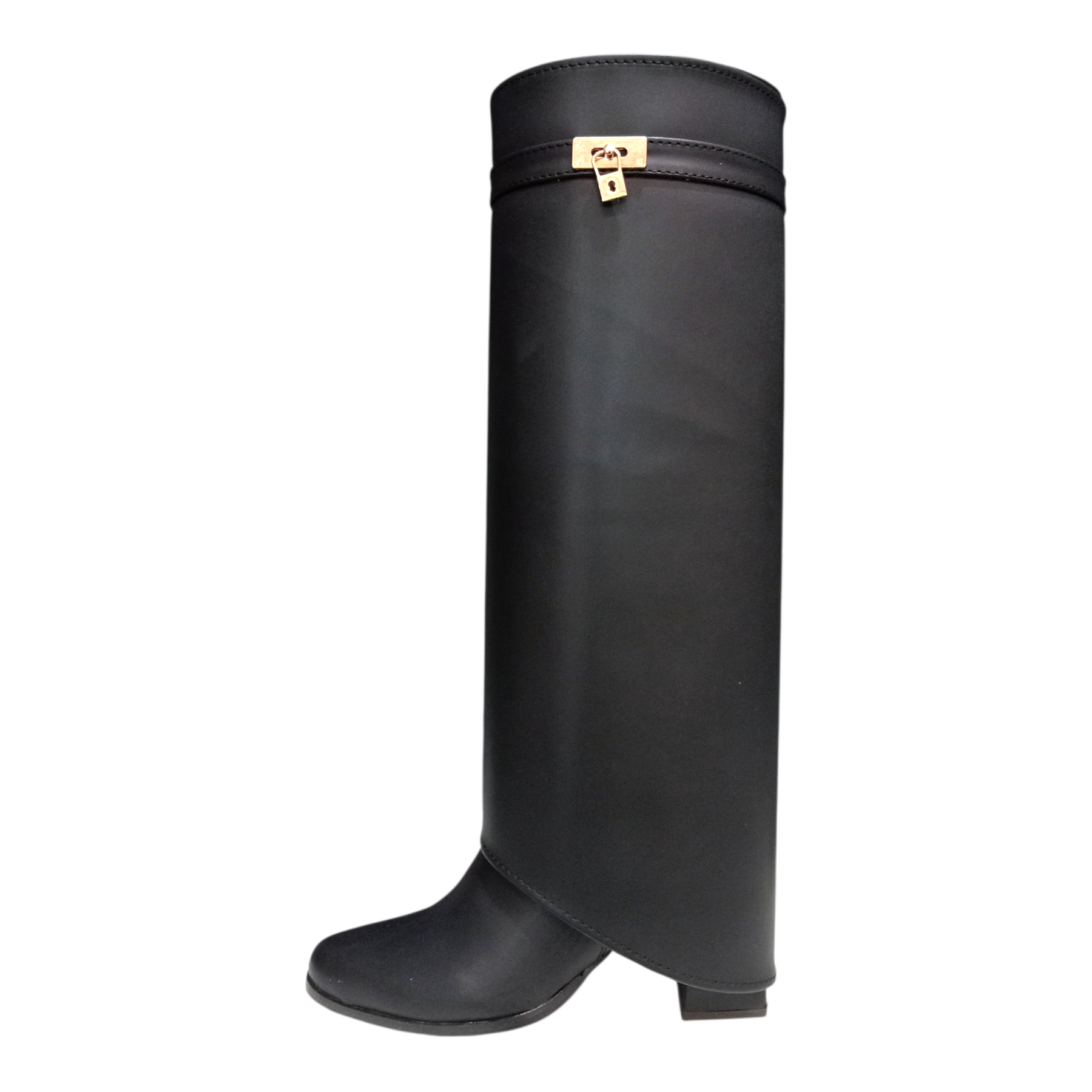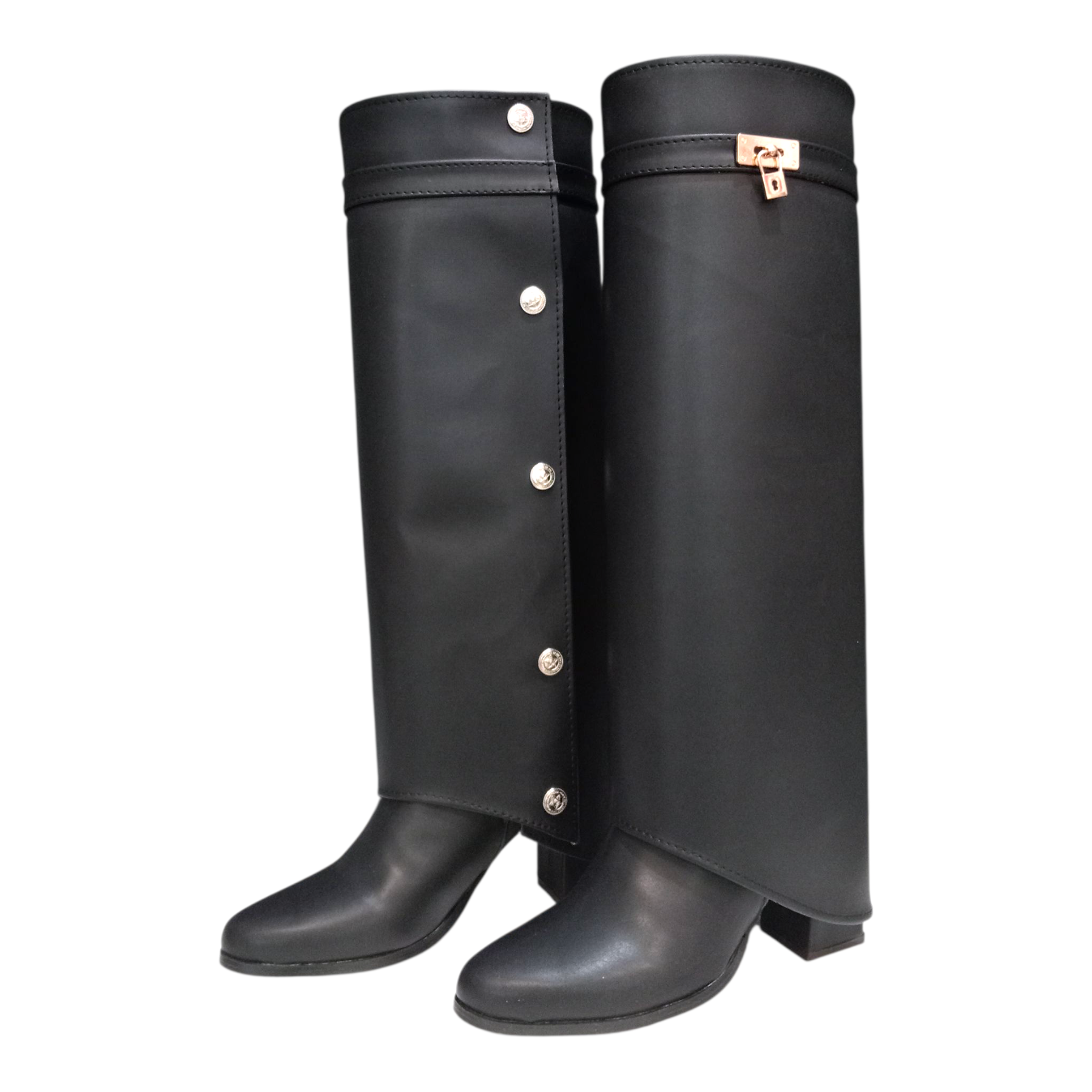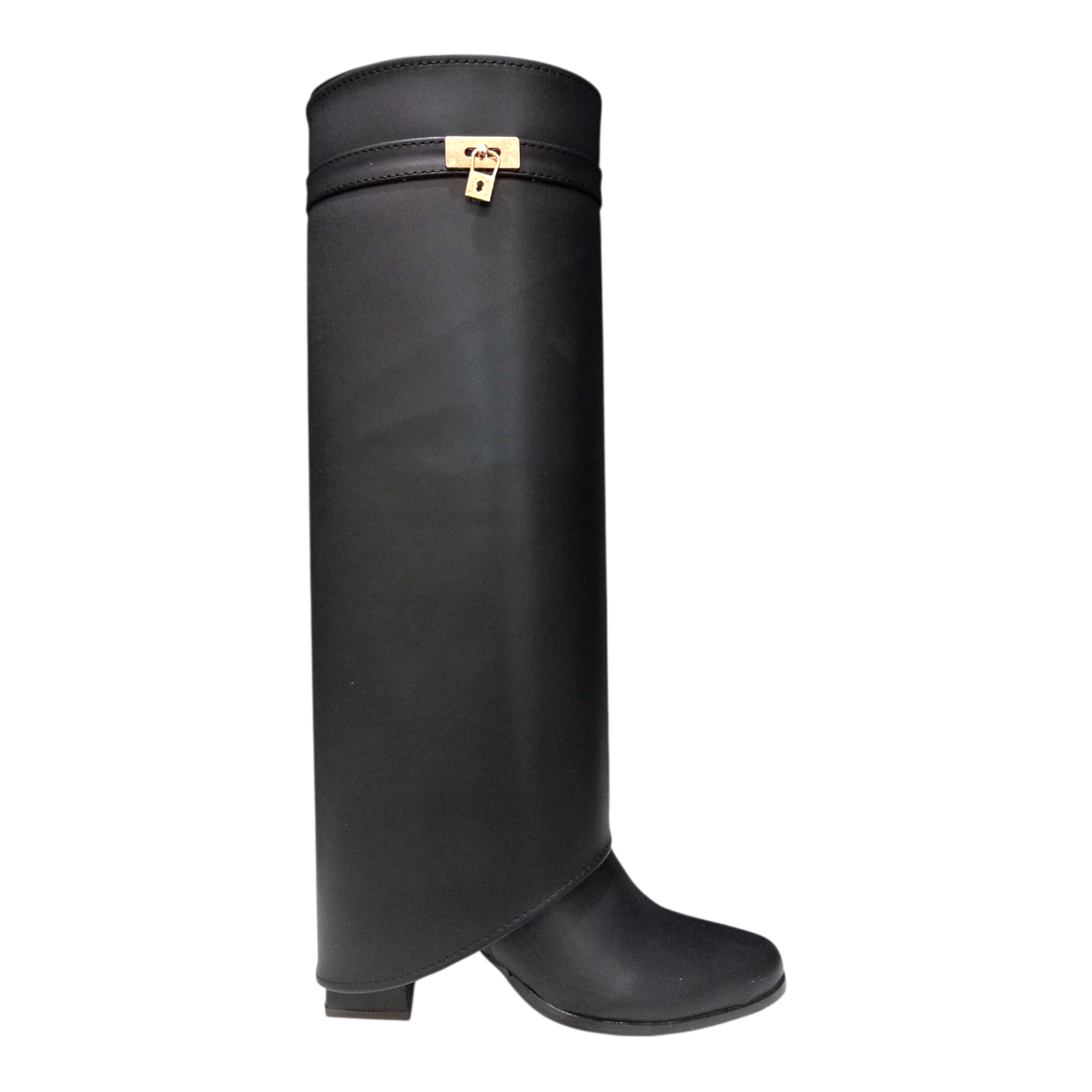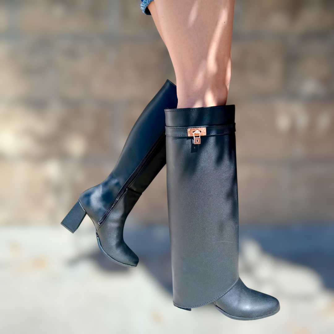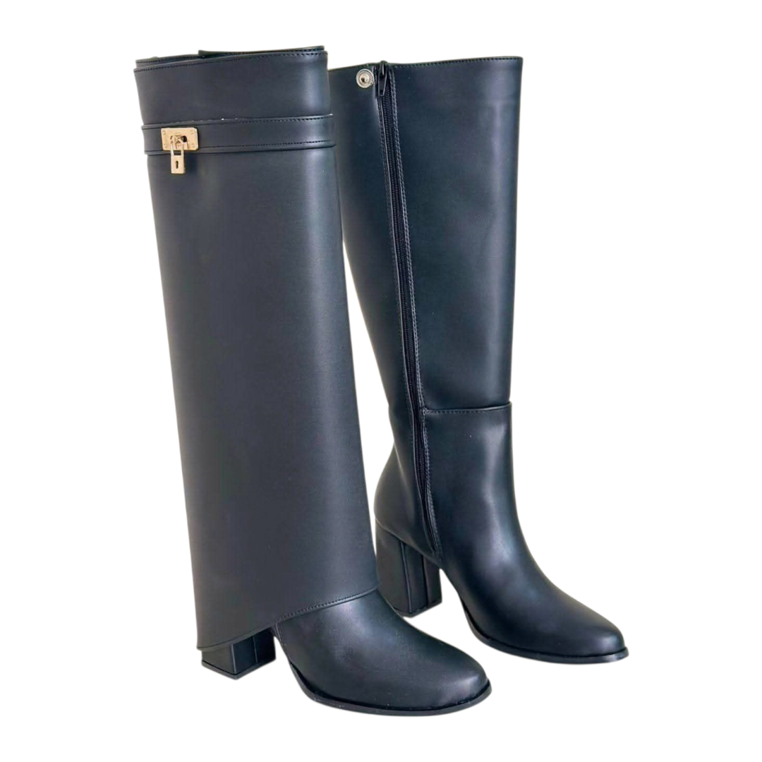 Descubre tu nuevo calzado favorito. Estas botas 2 en 1 de caña alta que combinan elegancia y un diseño atemporal, el distintivo detalle de candado eleva cualquier look, de día o de noche. Cuentan con una capa desprendible hacer dos looks.