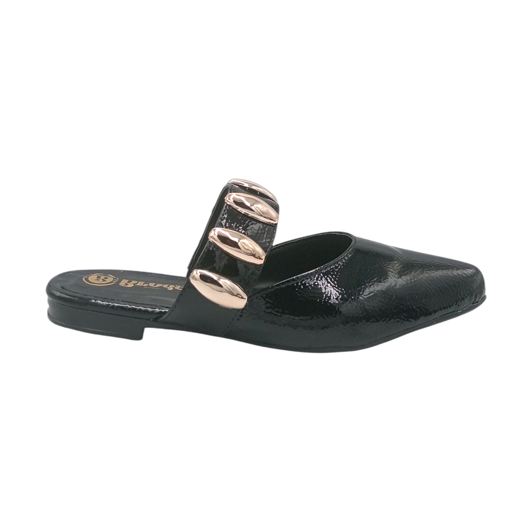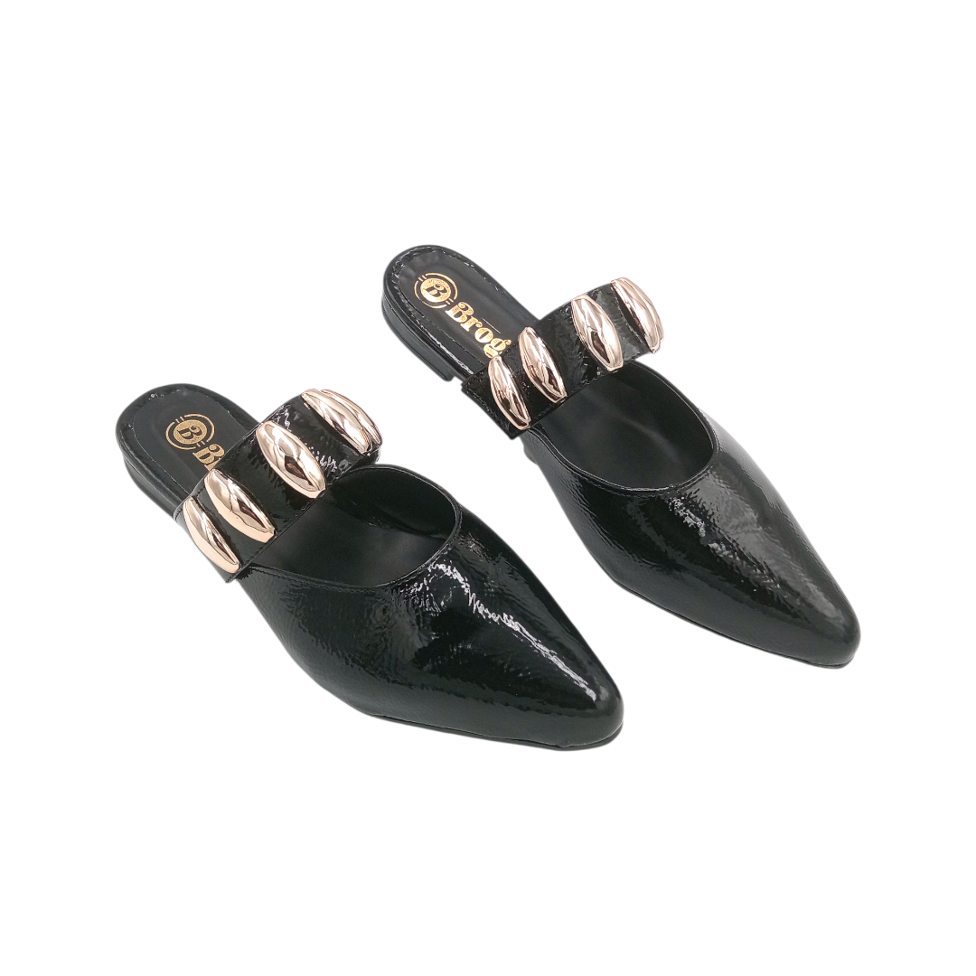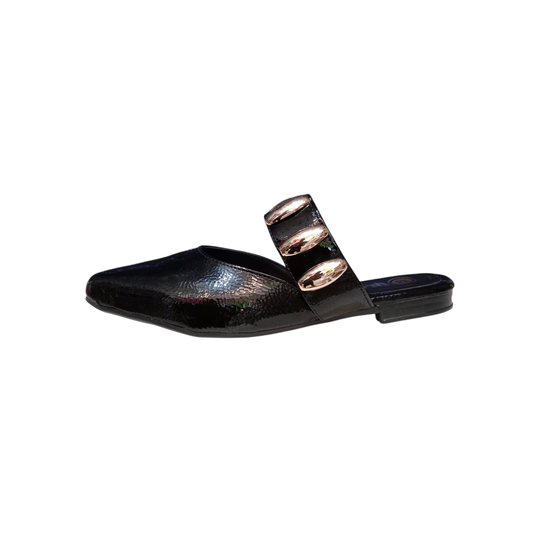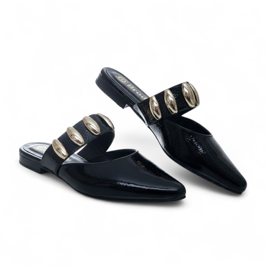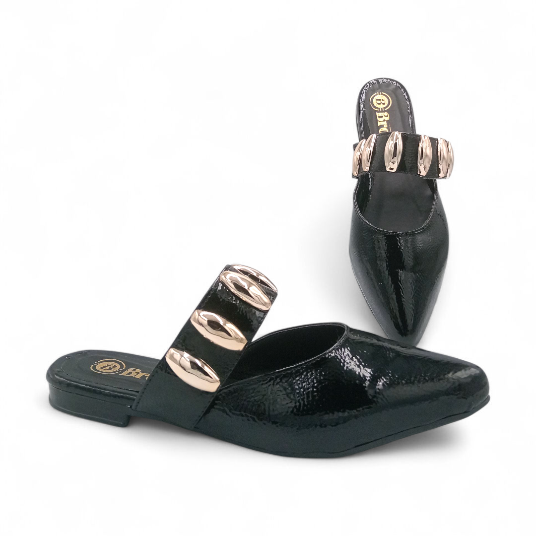 Eleva tu estilo con estos mules, la combinación perfecta de sofisticación y confort cuenta con detallado dorado en la tira ancha del empeine. Ideales para un estilo casual-chic.